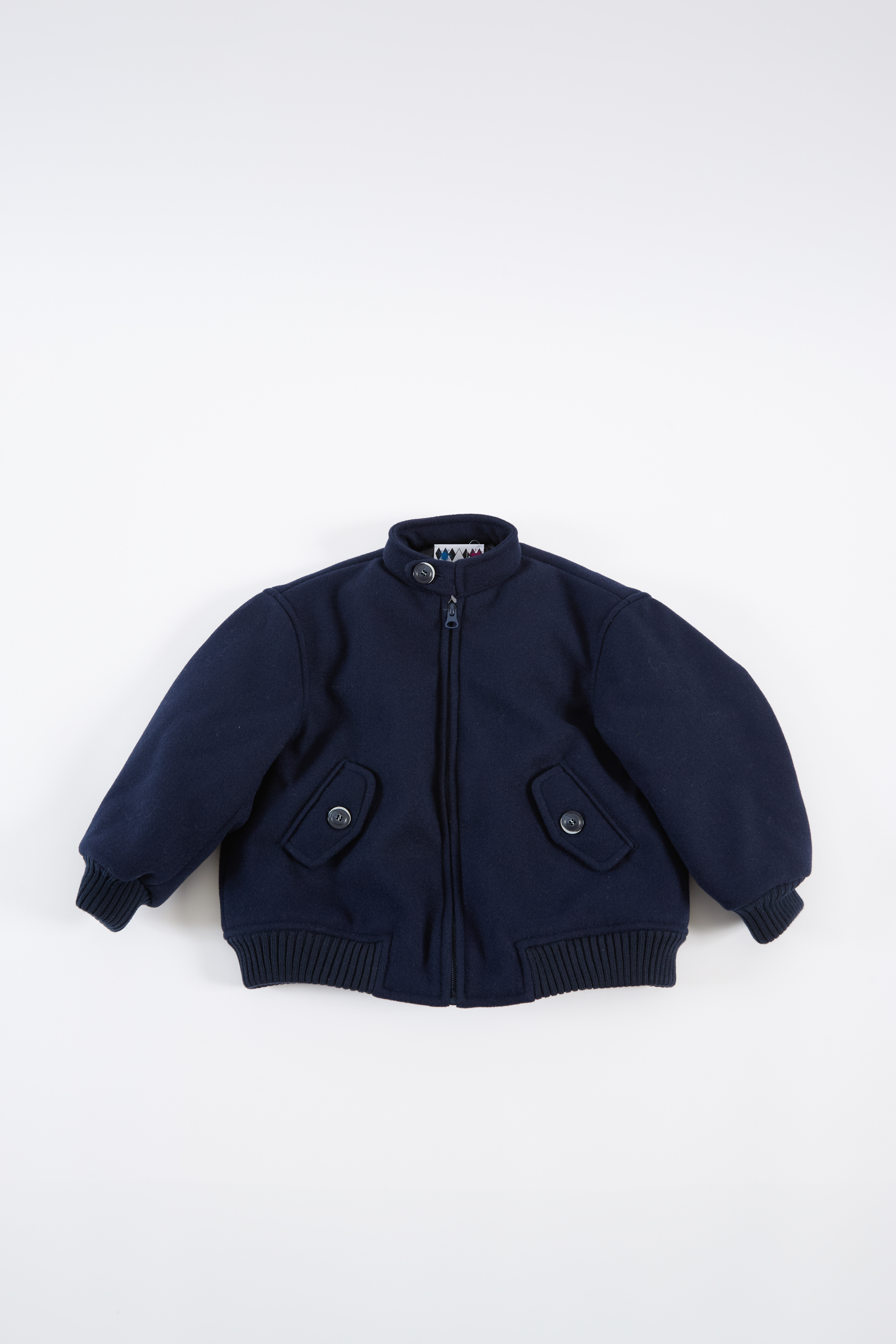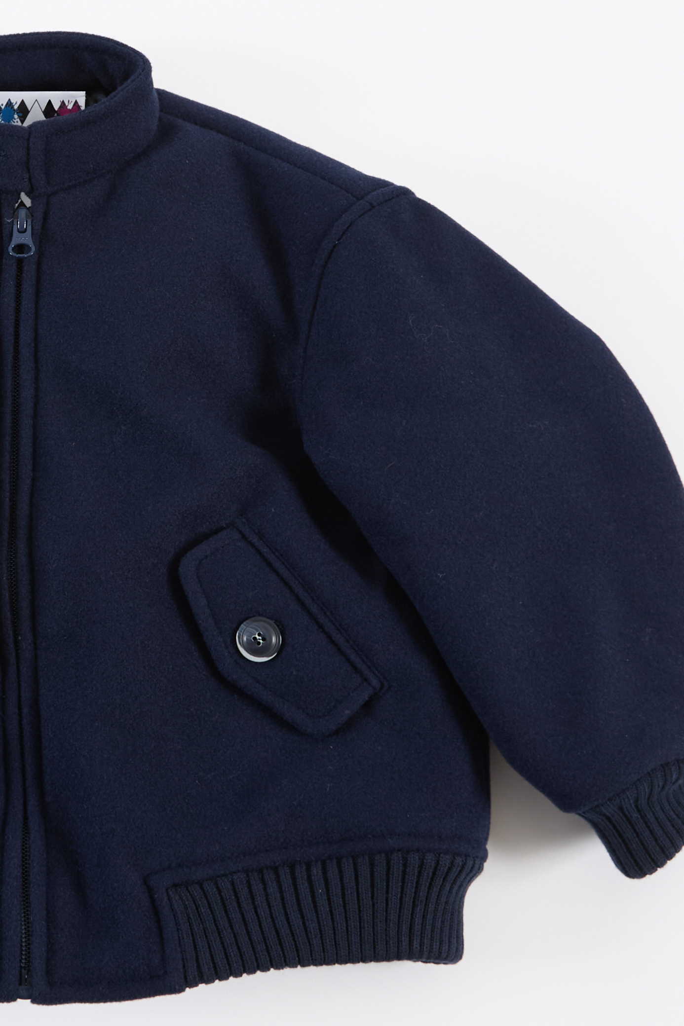 Warm, comfortable, and timeless: this boys' wool blend bomber jacket is perfect for facing the cold season with practicality. The sporty design combines with the elegant detail of the buttoned mandarin collar, while the ribbed cuffs, hem, and sleeve lining ensure a snug fit. A zip closure and front pockets with flaps and buttons complete the garment.