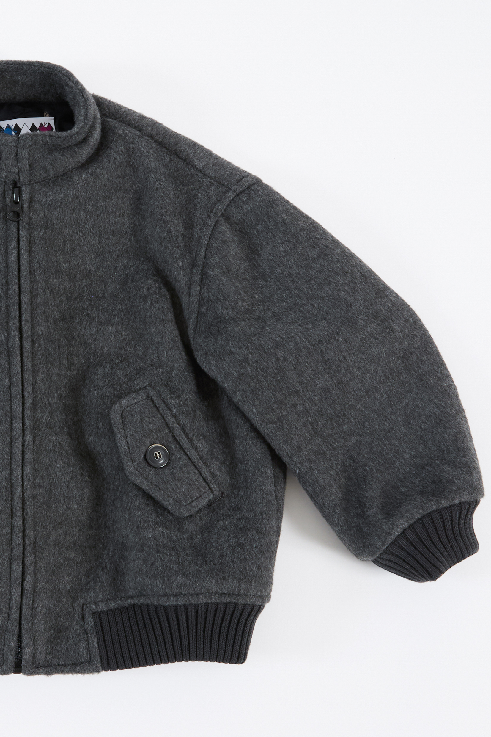 Warm, comfortable, and timeless: this boys' wool blend bomber jacket is perfect for facing the cold season with practicality. The sporty design combines with the elegant detail of the buttoned mandarin collar, while the ribbed cuffs, hem, and sleeve lining ensure a snug fit. A zip closure and front pockets with flaps and buttons complete the garment.