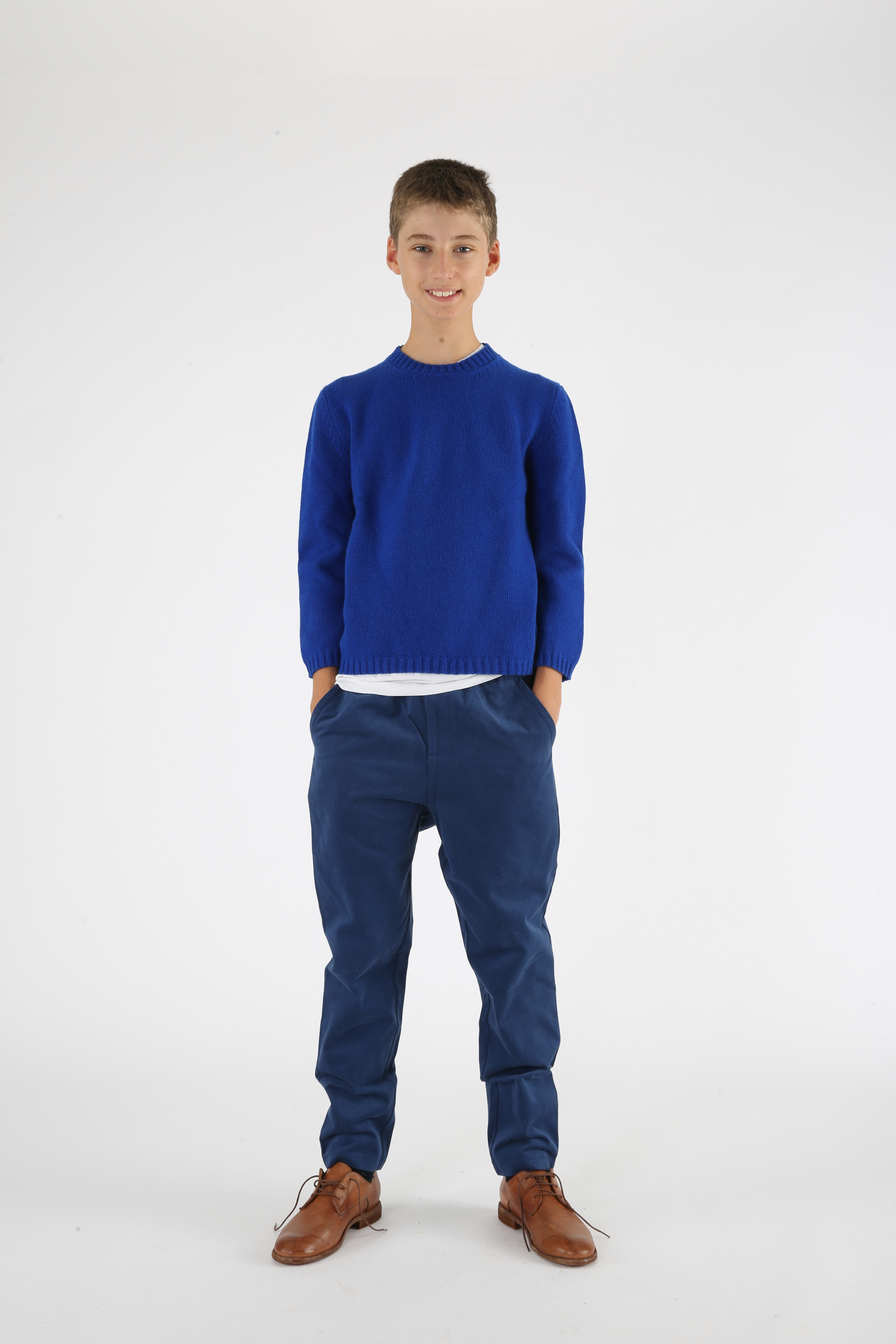 Warm and comfortable, this sweater in a super-fine wool is perfect for the coldest days. The simple, timeless design, with a round neck and ribbed cuffs and hem, makes it a versatile piece, ideal for any occasion. A must-have for your little ones' winter wardrobe.